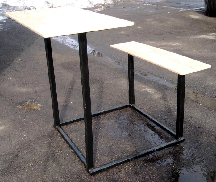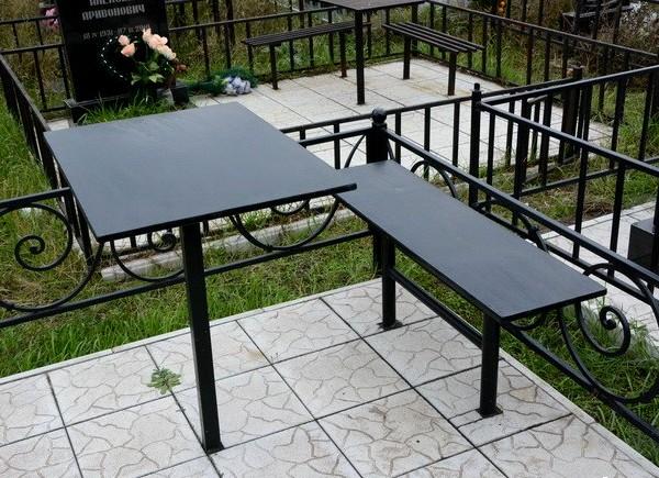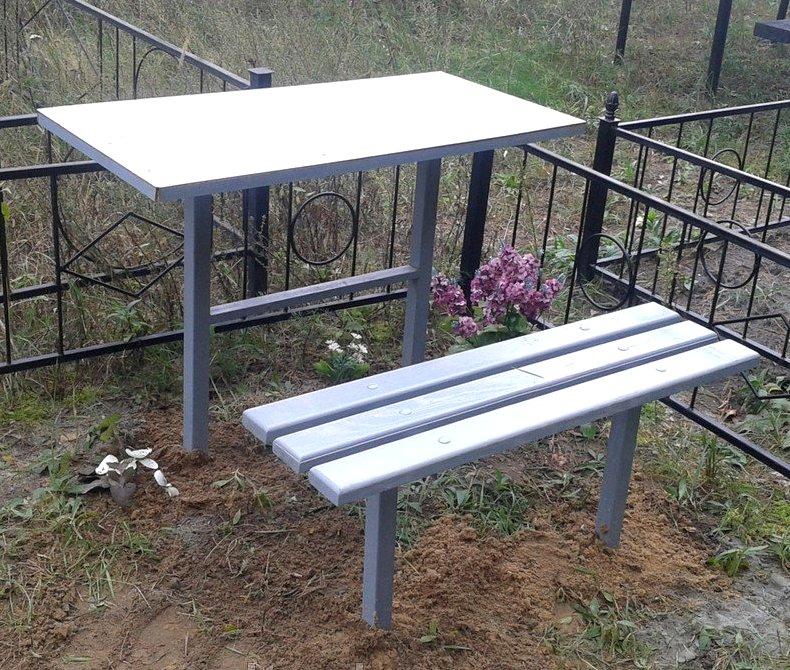Компактный и цельный комплект для благоустройства места захоронения. Идеально подходит для установки свечей, цветов и поминальных атрибутов. Скамья обеспечивает место для уединенного поминовения. Выполнен из долговечных материалов (натуральный/искусственный камень, металл), устойчивых к любым погодным условиям. Прочная монолитная конструкция Эргономичные размеры Стойкость к атмосферным воздействиям Скамья: длина: 1200мм, ширина: 350мм Высота сиденья: 500мм Стол: 550х1200мм, высота 900мм Металл. каркас: проф. труба 40х40мм, 40х20мм, арматура для монтажа Покрытие стола: металл лист 1,5мм, сиденье: доска 100х30мм Варианты покрытия дерева: краска, лак, морилка, Биотекс 2 слоя Покрытие каркаса: антикоррозионная грунт-эмаль 3в1